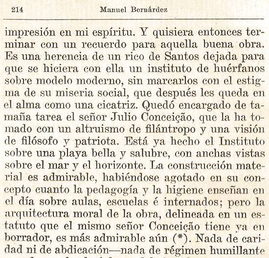 destinada à redenção dos órfãos. A obra está feita, e seu espírito há de marcar um sulco luminoso na história social do Brasil. A efígie aprazível