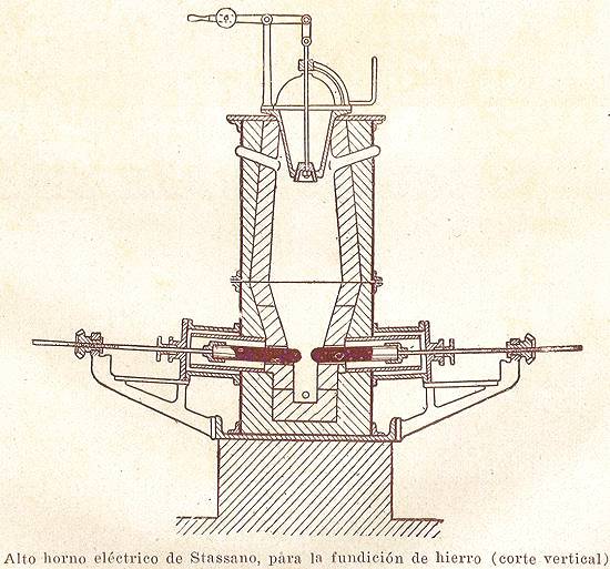PRELÚDIOS DA ELETRO-METALURGIA DO FERRO - Alto-forno elétrico de Stassano, para a fundição de