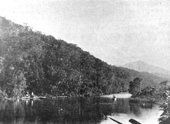 plantada de bananeiras, em demanda dos morros que fecham o aprazível vale do rio Cubatão; este corre