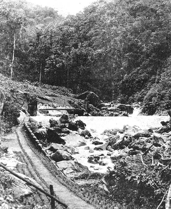 funicular que a engenharia engendrou, é das vertentes do Cubatão que a cidade de Santos se abastece d'água com superabundância, e em