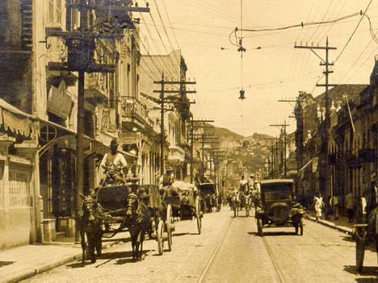visitam Santos manifestam marcada preferência pela Rua XV de Novembro, ladeada de edifícios de construção recente,