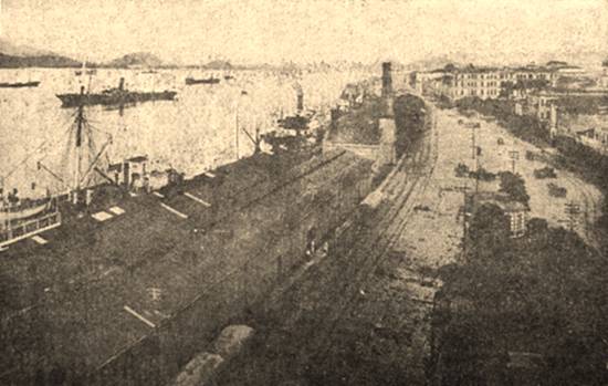 Trecho do cais santista, vendo-se também parte da Rua Tuiuti e do estuário, em 1928