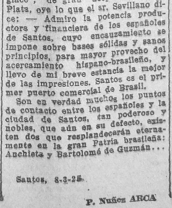 Este artigo foi publicado em espanhol mesmo no jornal santista A Tribuna, em 25 de março de 1925, na página 2: