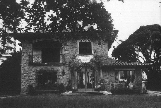 revestida de pedra, que tinha como destaque um painel de azulejos portugueses e um grande jardim, onde eram encontradas