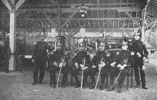 As guarnições que compõem a primeira prontidão para fogo são: a da bomba a vapor, 7 bombeiros; carro de mangueiras, 3 bombeiros; registro, 3 bombeiros; escada Magyrus, 3 bombeiros;