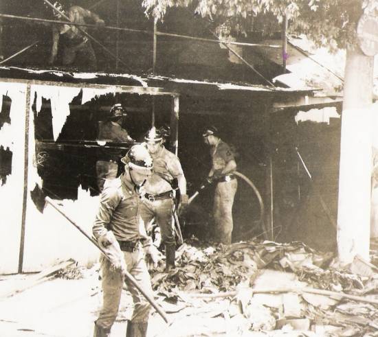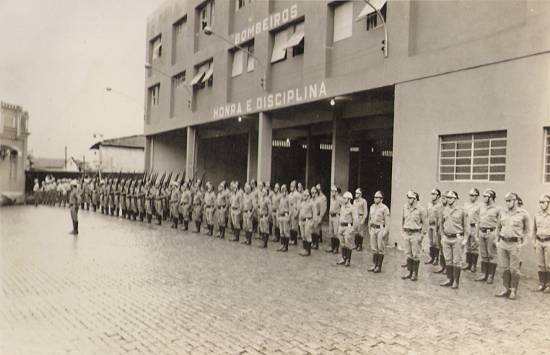 Em 1975, a Companhia de combate a Incêndios e Salvamento Terrestre, em formação no pátio do