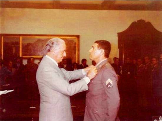 Governador Franco Montoro condecora o bombeiro Carlos Galante, em 1985
