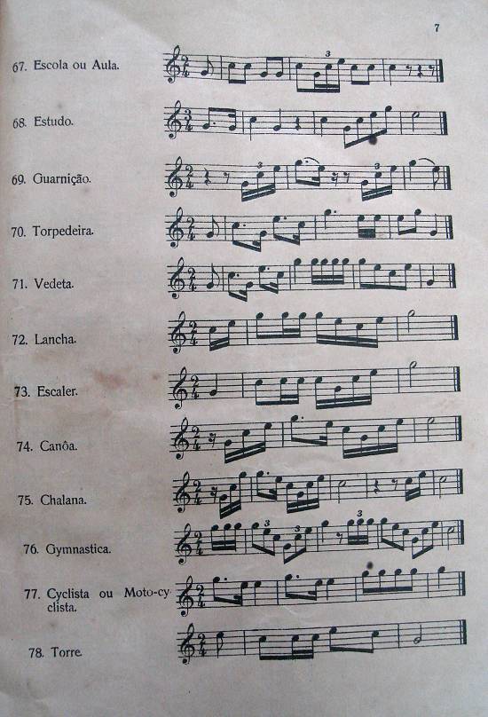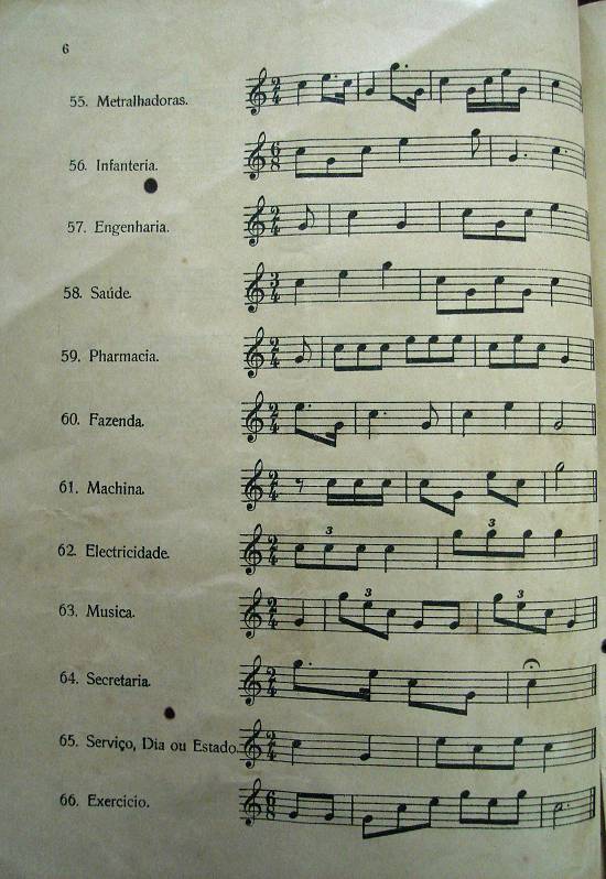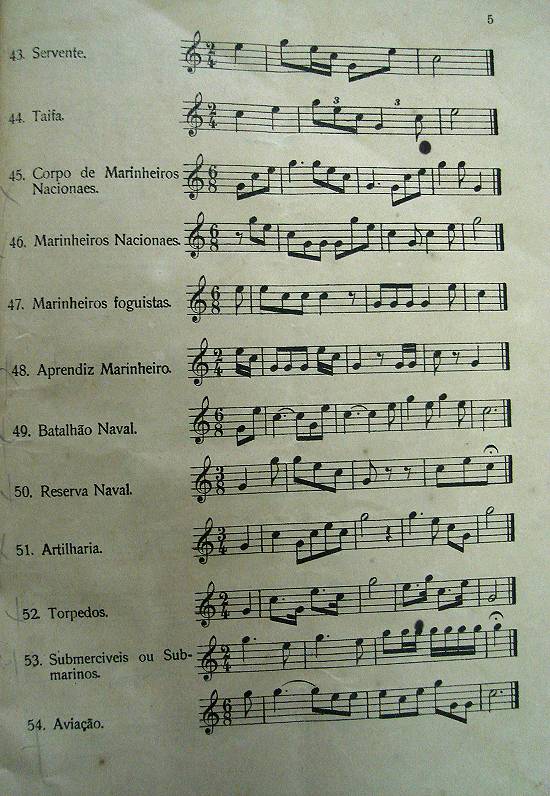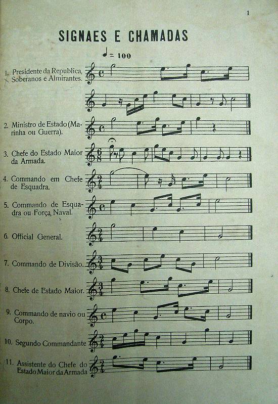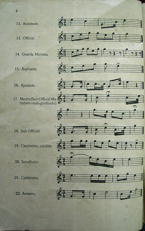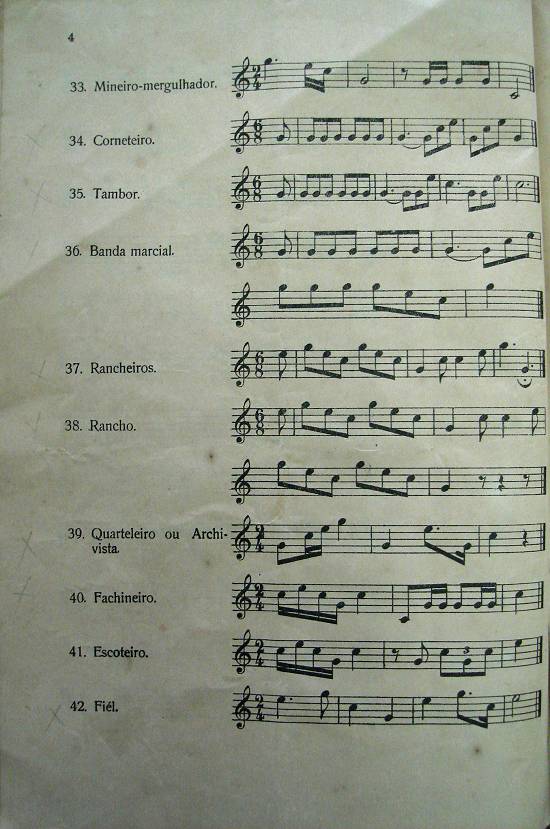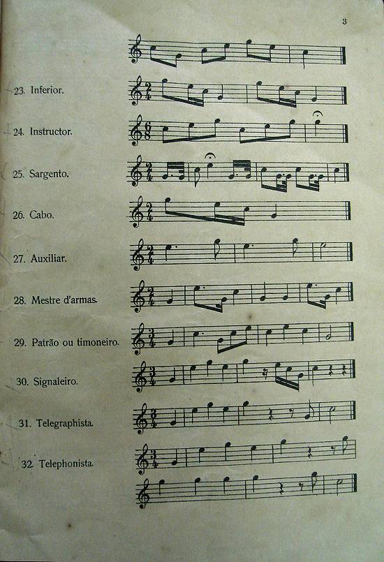 Armando foi corneteiro, entre os fuzileiros navais. O acervo mantido por sua família inclui este livrete editado em 1917 pelo Ministério da Marinha, para os ordenanças, com as instruções sobre os toques de corneta:
