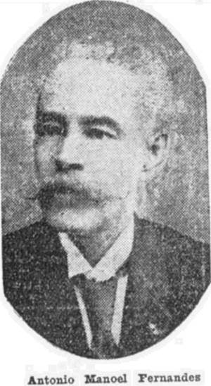 Antonio Manoel Fernandes - Nascido em Santos, a 5 de dezembro de 1843, como filho legítimo de Manoel Fernandes e de d. Etelvina M. de Jesus Fernandes. Estudou primeiras letras em Santos, e na idade de 15 anos seguiu para São Paulo, a fim de fazer os preparatórios no Colégio Paulistano, de onde saiu em 1861, para matricular-se no primeiro ano da Academia de Direito. Não se sabe por quê, porém, deixou de formar-se, abandonando a faculdade quando já cursava o seu terceiro ano.