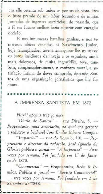 Injustos seríamos se silenciássemos a parte com que o dinâmico e fecundo comércio santista tem contribuído para a efetivação do nosso progresso material, núncio do progresso moral em que porfiamos