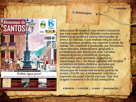 Em setembro 2009, surgiram as publicações sob responsabilidade do Instituto Histórico e Geográfico de Santos (IHGS), tendo como editor o escritor e jornalista Sergio Willians. Após três edições mensais do Almanaque Santista, com curiosidades históricas, passou a ser publicado em 2011 o Almanaque de Santos, que teve quatro edições trimestrais, sendo descontinuado a seguir: