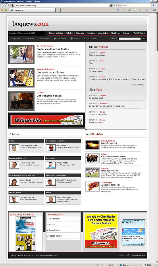 Site - Além da produção de reportagens para suas páginas, o jornal também mantém um site na Internet (boqnews.com), onde mantém o leitor informado durante a semana, com