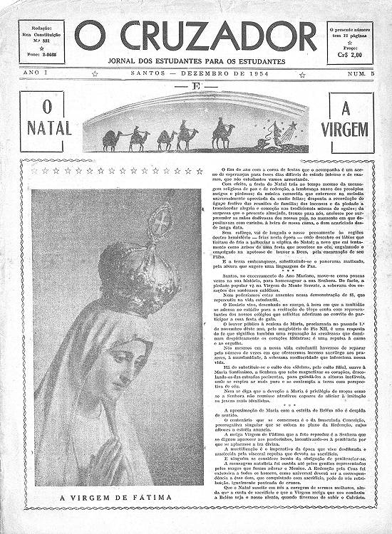 Primeira página do jornal O Cruzador número 5 - Dezembro de 1954