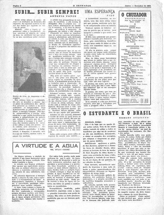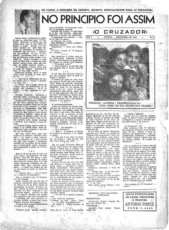 Em 1954 surgiu O Cruzador, "Jornal dos Estudantes para os estudantes", com redação na Rua Constituição, 331, em Santos, tendo como redator chefe Antonio Ponce e como secretário Antonio Datti. Na equipe da publicação, José Cardoso da Silva, Carlos Alberto Aulicino, Eduardo Leonel Vieira, Zélia Tanaka e Heloísa Helena Sérvullo da Cunha. Na última página do número 5, de dezembro de 1954, incluiu um texto do jornalista De Vaney.