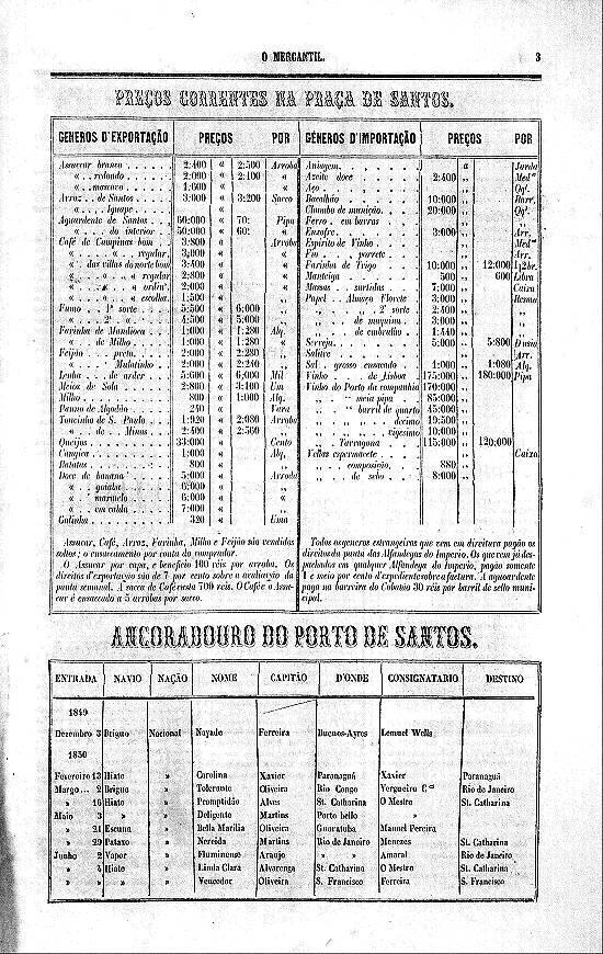 competente, um mappa dos preços correntes n'esta praça em refferencia aos generos principaes tanto de importação como de exportação. - Algumas