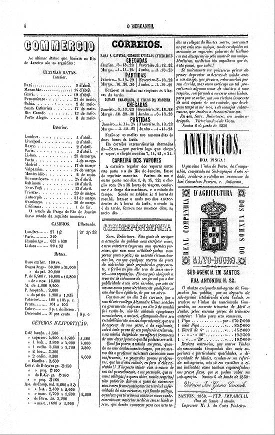 O Mercantil, edição nº 1, de 8 de junho de 1850, página 4