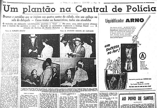 objetiva da A Tribuna durante o plantão que a reportagem fez na Central de Polícia. Em cima, à esquerda, o inspetor Pinto Vilela aborda um