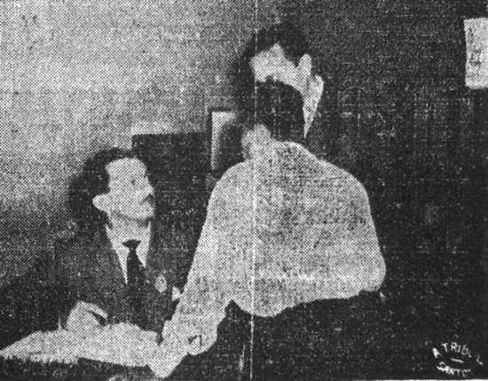 de trabalho, o escrivão Mário Russo, vendo-se o sub-delegado Campos,...