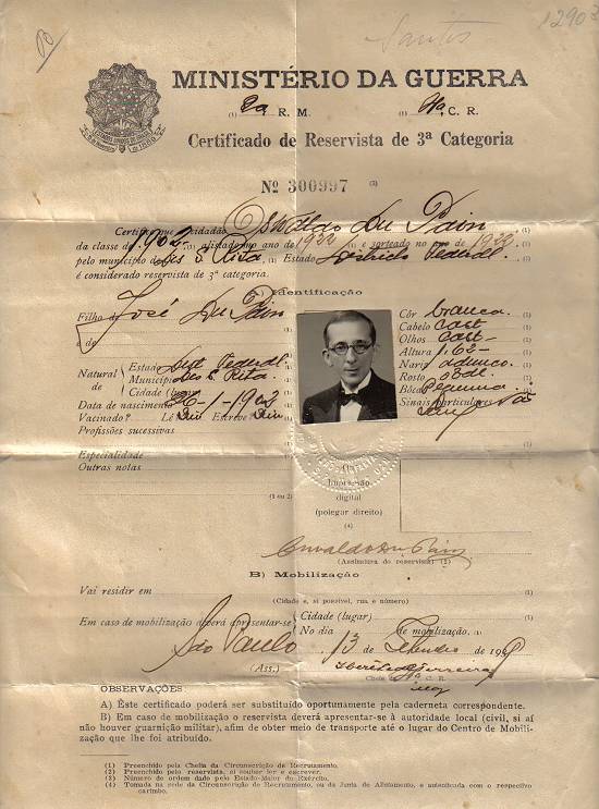 datada de 17/9/2008, que conforme o certificado de reservista em seu poder, Osvaldo Du Pain tinha altura de 1,62 m).