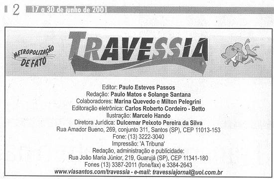 publicidade em Guarujá, como informado no expediente da edição correspondente à quinzena de 17 a 30 de junho de 2001 (nº 46/ano 2), integrante do acervo