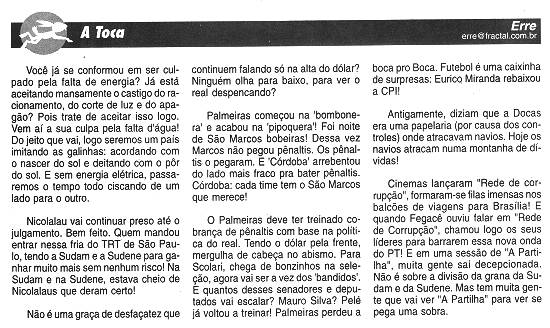Coluna A Toca do Erre, na página 2 do jornal Travessia, número 46/ano 2,