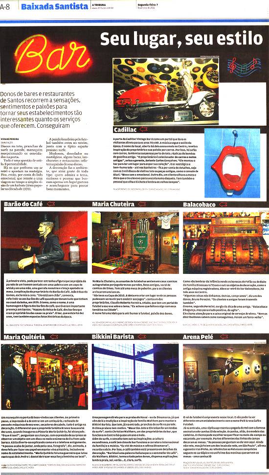 Matéria publicada na página A-8 do jornal santista A Tribuna, no dia 7 de fevereiro de 2011: