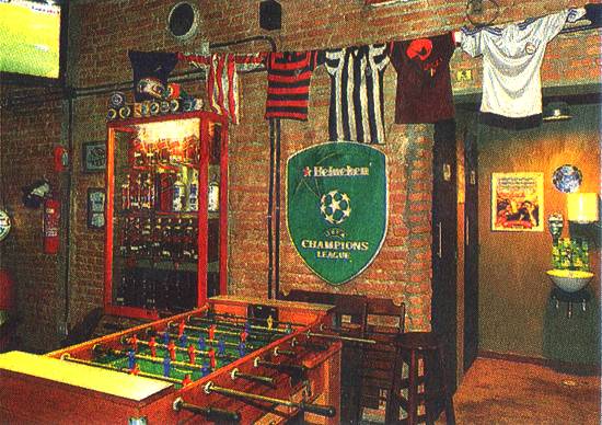 | No Maria Chuteira, os amantes de futebol se sentem em casa: camisas autografadas por jogadores nas paredes, fotos antigas, varal de camisas de times. Tem até uma mesa de pebolim, para os clientes
