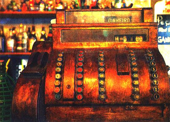 garrafa na outra e o braço apoiado na mesa. A explicação do proprietário do Barão do café, João Eduardo Gomes, esclarece a cena. "Ele está sem chão", comenta, referindo-se aos barões do café quando perderam tudo que tinham no crash da bolsa,