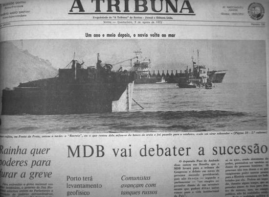 Imagem: reprodução da primeira página de A Tribuna, de 9 de agosto de 1972