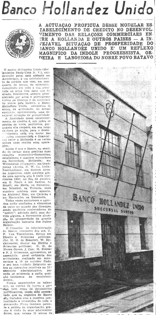 país batavo, o Banco Hollandez Unido completou 25 anos de atividade, no atual exercício, apresentando uma invejável situação de prosperidade.