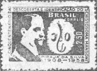 DR. PIRAJÁ DA SILVA - Cientista de renome internacional, teve sua efígie em um selo brasileiro emitido em 28 de dezembro de 1959, graças ao trabalho dos diretores do Clube Filatélico e Numismático de Santos, a cuja frente se encontravam os srs. Esmeraldo Batista e Edgar Cerqueira Falcão. O desenho é de autoria de Américo Cassoli