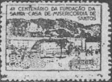 IV CENTENÁRIO DA SANTA CASA - Emitido em 7 de novembro de 1943, seu lançamento foi prestigiado com a presença do Embaixador José Carlos de Macedo Soares. O motivo central é a perspectiva do moderno edifício da primeira instituição de caridade da América Latina