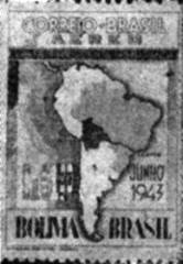 VISITA DO PRESIDENTE PENARANDA - O selo, que assinalou em 1943 a visita ao nosso país do presidente do Paraguai, apresenta o mapa do Brasil e a indicação das cidades de Arica e Santos, motivo suficiente para demonstrar a importância destas cidades