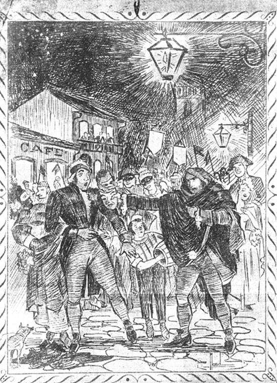 Foi nessa hora que um vulto embuçado começou uma estranha ronda pelo Campo da Misericórdia, atropelado aqui e ali por alucinados foliões em garabulha, visivelmente preocupado com a turba