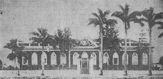 atual edifício, que revive o tradicional estilo manuelino, em suas linhas e detalhes, concepção e projeto do saudoso engenheiro português, dr.