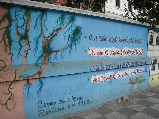 Colégio Barnabé, em 1903, o centenário cedro do Líbano continua adornando a área dessa escola, e no século XXI ganhou uma