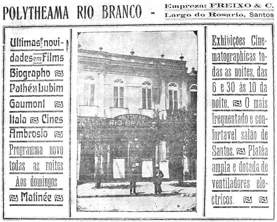 Cinema Politeama Rio Branco Publicado na revista santista A Fita nº 3 (ano I), de 15 de maio de 1911 Exemplar no acervo da Sociedade Humanitária dos Empregados no Comércio de Santos (SHEC)