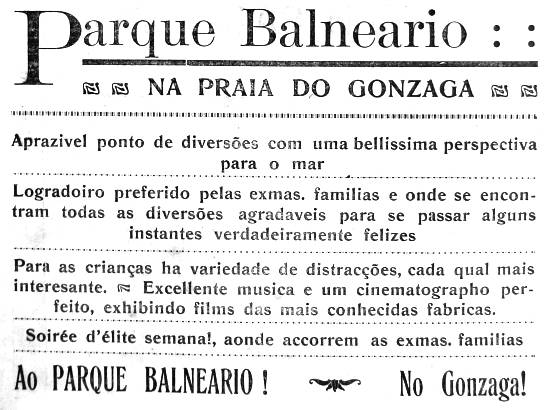 Parque Balneário Hotel Publicado na revista santista A Fita nº 3 (ano I), de 15 de maio de 1911 Exemplar no acervo da Sociedade Humanitária dos Empregados no Comércio de Santos (SHEC)