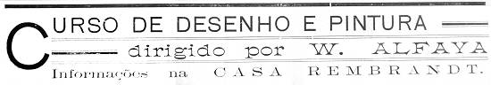 Curso de Desenho e Pintura dirigido por W. Alfaya Publicado na revista santista A Fita nº 3 (ano I), de 15 de maio de 1911 Exemplar no acervo da Sociedade Humanitária dos Empregados no Comércio de Santos (SHEC)