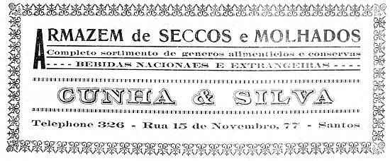 Armazém de Secos e Molhados, de Cunha & Silva Publicado na revista santista A Fita nº 3 (ano I), de 15 de maio de 1911 Exemplar no acervo da Sociedade Humanitária dos Empregados no Comércio de Santos (SHEC)