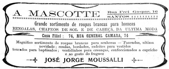 A Mascote, de José Jorge Moussalli Publicado na revista santista A Fita nº 3 (ano I), de 15 de maio de 1911 Exemplar no acervo da Sociedade Humanitária dos Empregados no Comércio de Santos (SHEC)