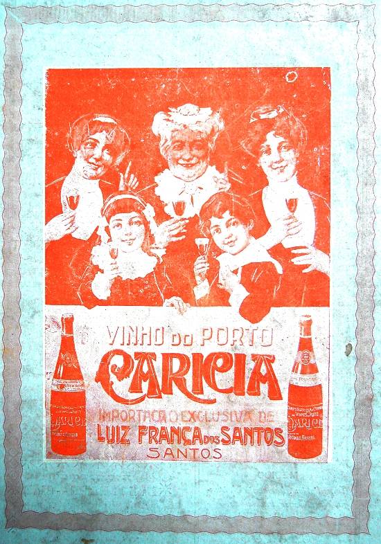 Vinho do Porto Caricia - importador Luiz França dos Santos Publicado na última capa da revista santista A Fita nº 3 (ano I), de 15 de maio de 1911 Exemplar no acervo da Sociedade Humanitária dos Empregados no Comércio de Santos (SHEC)