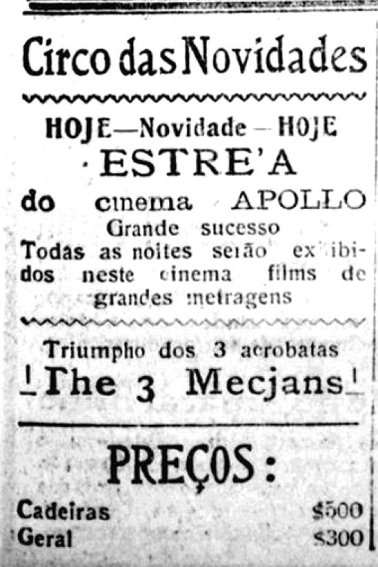 Circo das Novidades estreia o Cine Apollo, com filmes longa-metragem e acrobatas
