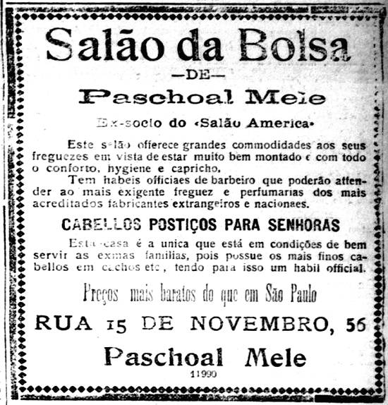 Salão da Bolsa, de Paschoal Mele, na Rua 15 de Novembro, 55 - cabelos postiços para senhoras