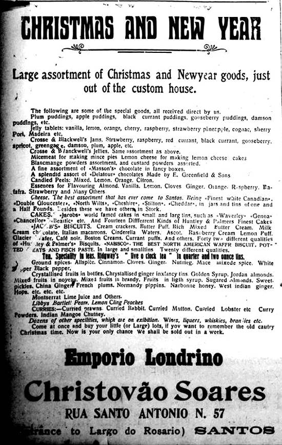 Cgristmas and New Year - Empório Londrino, de Christovão Soares, na antiga Rua Santo Antonio, 57 (atual Rua do Comércio)