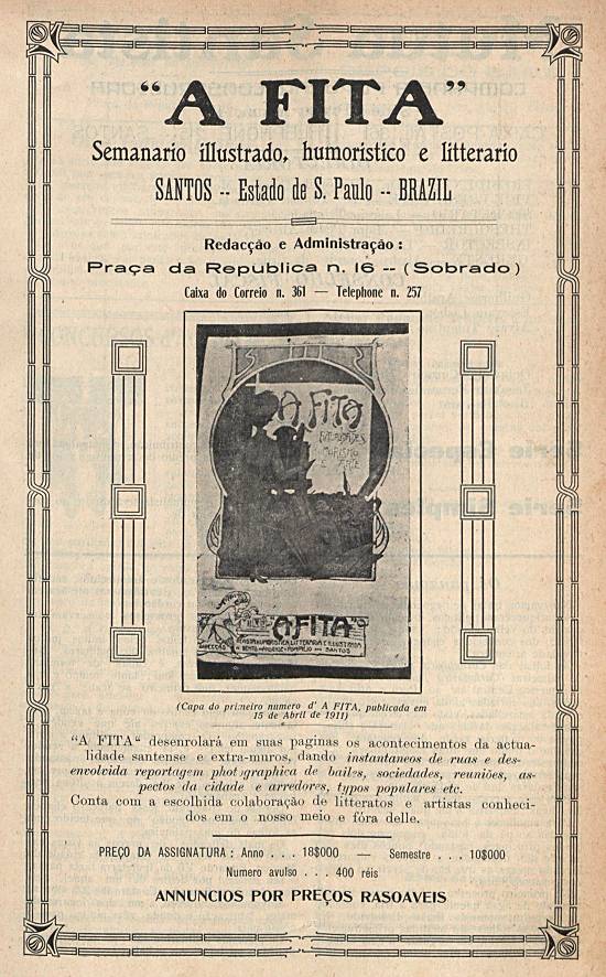 Publicado na revista santista A Fita nº 26, de 16 de outubro de 1913, página 9