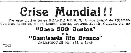 Casa 500 Contos e Camisaria Rio Branco - Crise Mundial