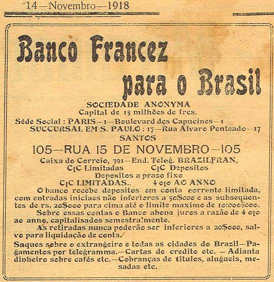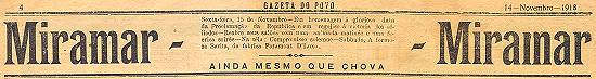 Publicado no jornal vespertino santista Gazeta do Povo, em 14 de novembro de 1918, página 3