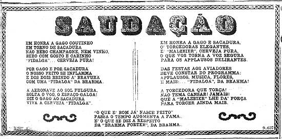 Cervejas Brahma - saudação aos aeronautas portugueses Gago Coutinho e Sacadura Cabral