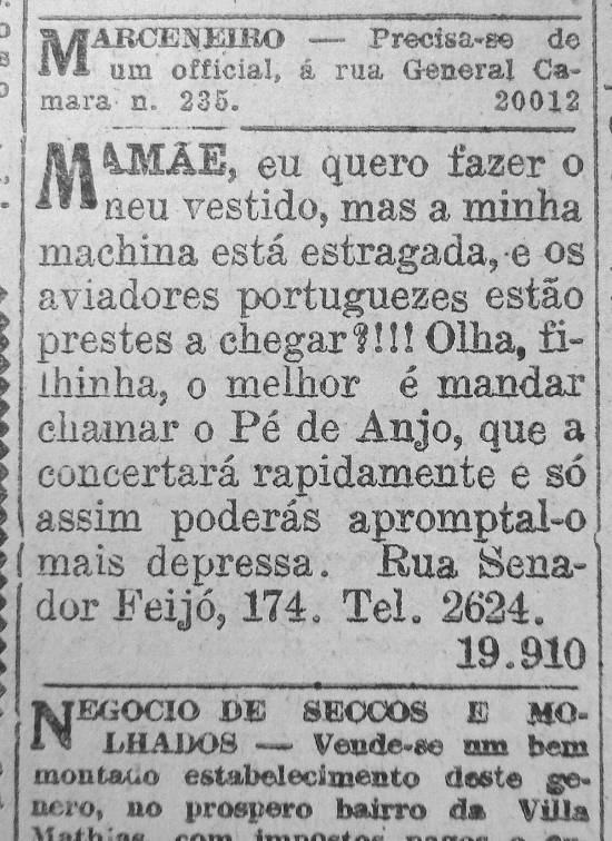 Pé de Anjo - alusão à visita dos aeronautas portugueses Gago Coutinho e Sacadura Cabral